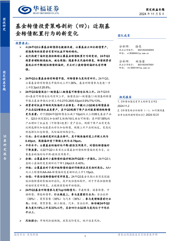 【华福证券】【20241105】基金转债投资策略剖析(四):近期基金转债配置行为的新变化-10页