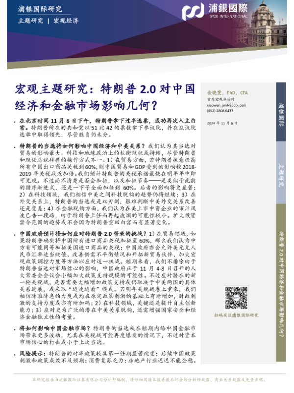 【浦银国际】【20241106】宏观主题研究:特朗普2.0对中国经济和金融市场影响几何?-16页