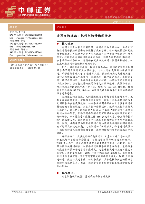 【中邮证券】【20241103】宏观观点-美国大选跟踪:摇摆州选情依然胶着-16页