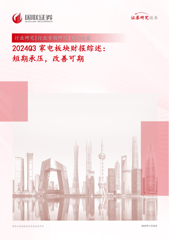 【国联证券】【20241106】家用电器行业2024Q3家电板块财报综述:短期承压,改善可期-32页