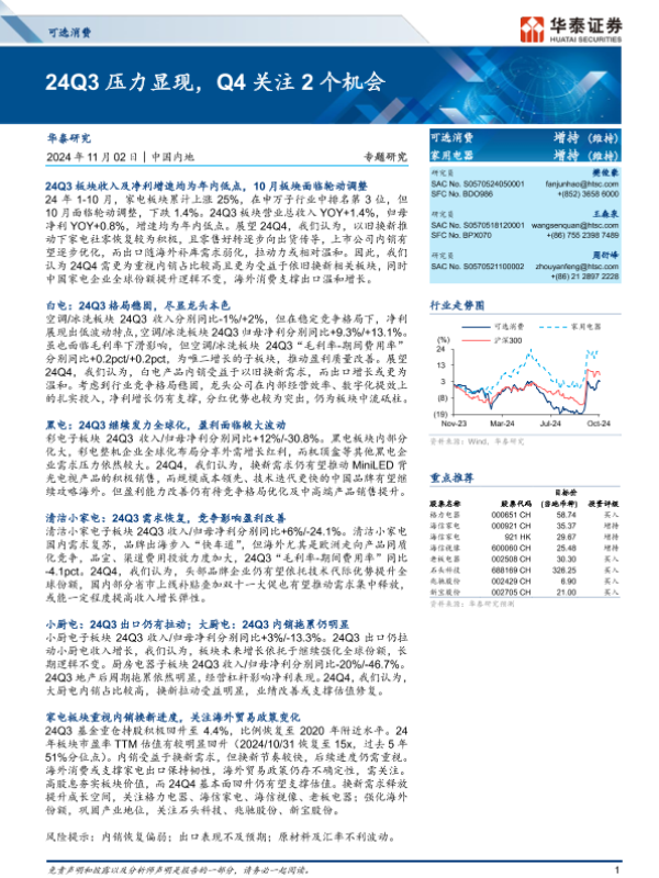 【华泰证券】【20241102】家用电器行业专题研究:24Q3压力显现,Q4关注2个机会-26页