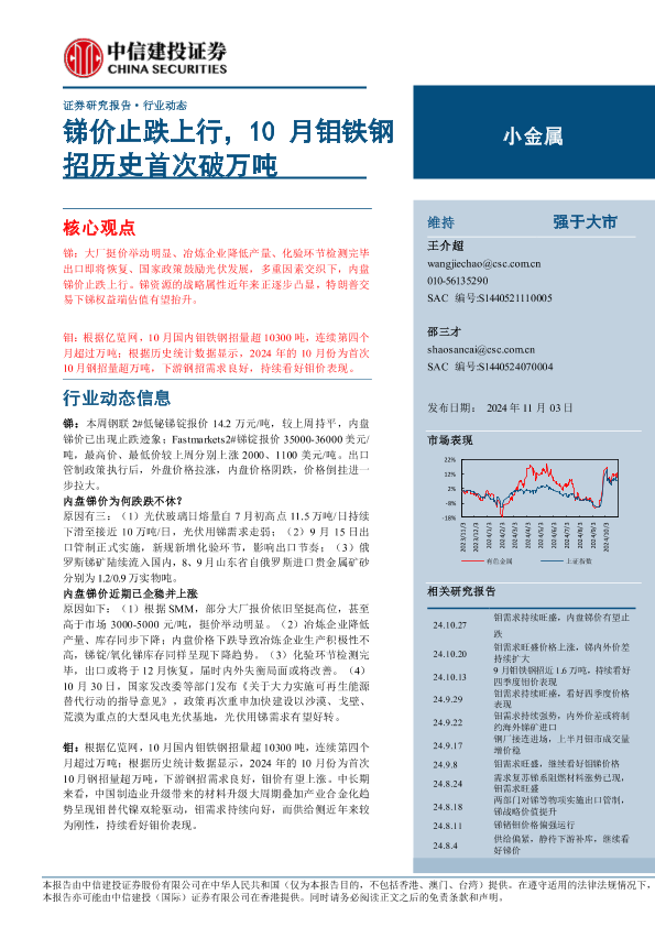 【中信建投证券】【20241103】小金属行业动态:锑价止跌上行,10月钼铁钢招历史首次破万吨-10页