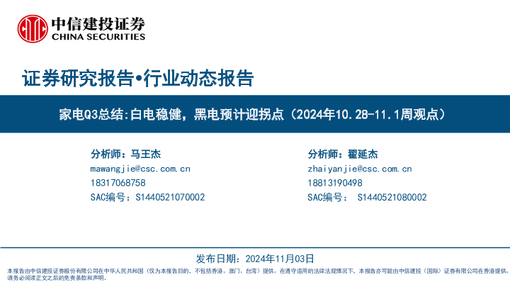 【中信建投证券】【20241103】家电行业Q3总结:白电稳健,黑电预计迎拐点-50页