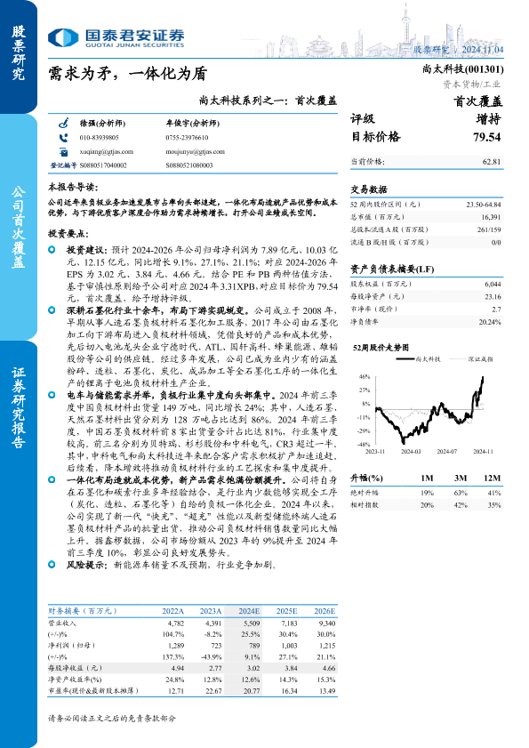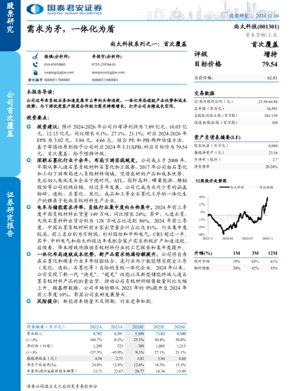 【国泰君安证券】【20241104】尚太科技(001301)尚太科技系列之一:首次覆盖,需求为矛,一体化为盾-17页