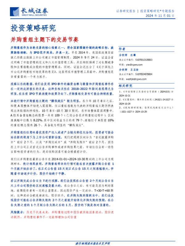 【长城证券】【20241101】并购重组主题下的交易节奏-11页