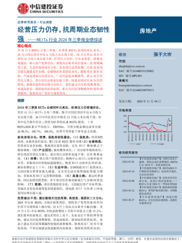 【中信建投证券】【20241104】房地产行业REITs行业2024年三季报业绩综述:经营压力仍存,抗周期业态韧性强-28页