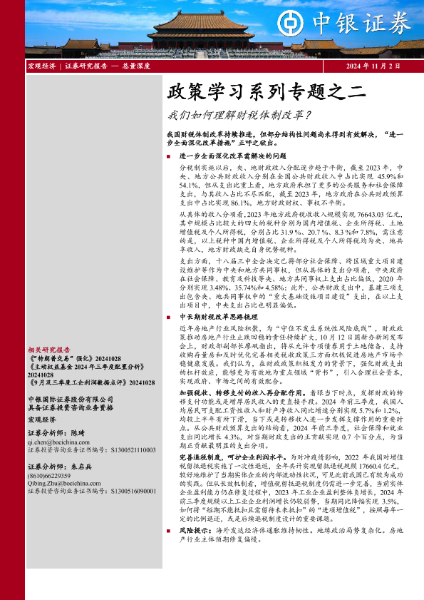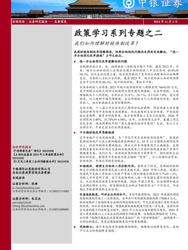【中银证券】【20241102】政策学习系列专题之二:我们如何理解财税体制改革?-17页