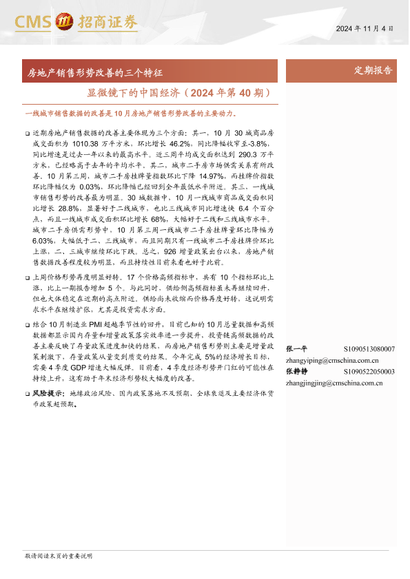 【海通证券】【20241104】显微镜下的中国经济(2024年第40期):房地产销售形势改善的三个特征-39页