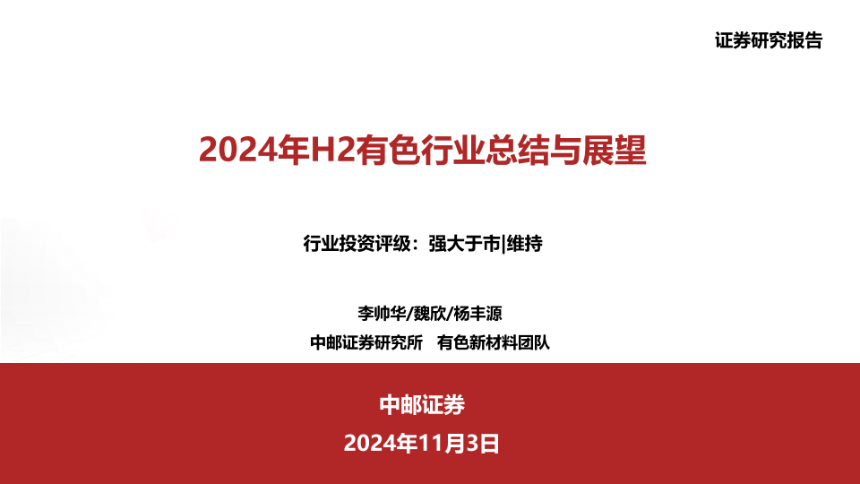 【中邮证券】【20241103】2024年H2有色行业总结与展望-24页