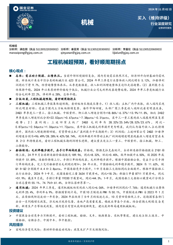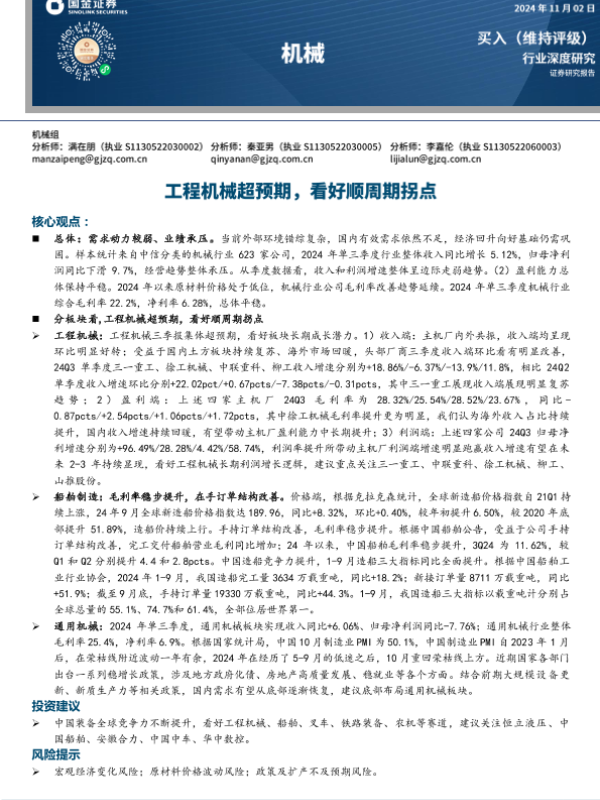 【国金证券】【20241102】机械行业深度研究:工程机械超预期,看好顺周期拐点-13页