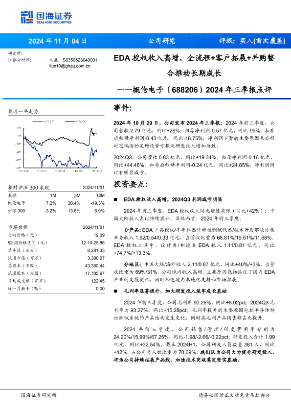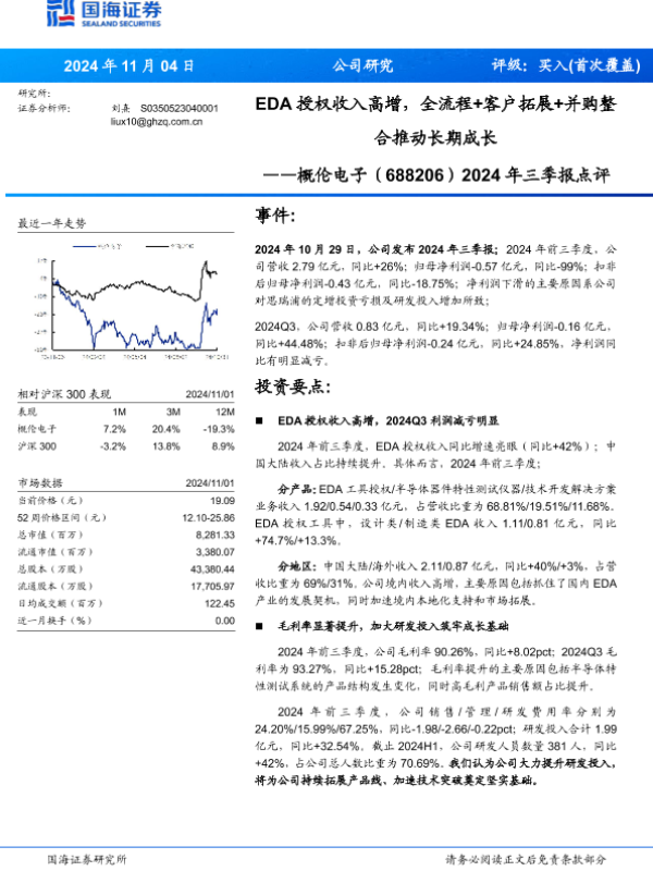 【国海证券】【20241104】概伦电子(688206)2024年三季报点评:EDA授权收入高增,全流程+客户拓展+并购整合推动长期成长-13页