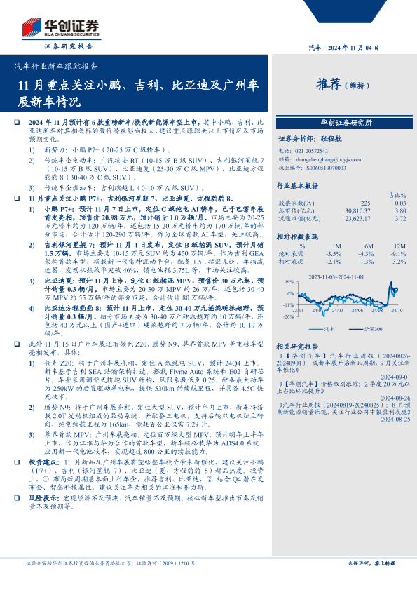 【华创证券】【20241104】汽车行业新车跟踪报告:11月重点关注小鹏、吉利、比亚迪及广州车展新车情况-16页