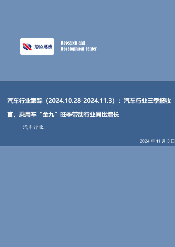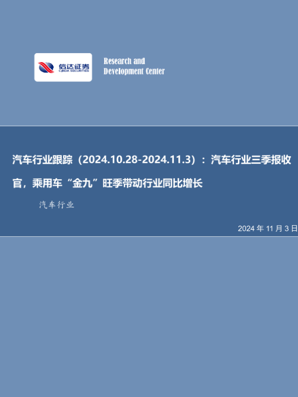 【信达证券】【20241103】汽车行业跟踪:汽车行业三季报收官,乘用车“金九”旺季带动行业同比增长-21页