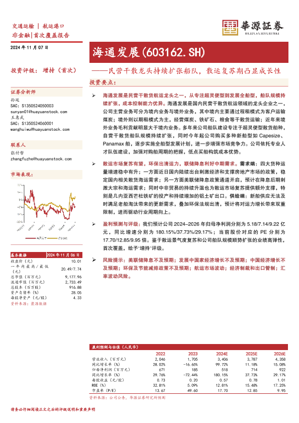 【华源证券】【20241107】海通发展(603162)民营干散龙头持续扩张船队,散运复苏期凸显成长性-22页