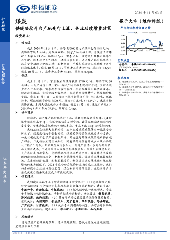【华福证券】【20241103】煤炭行业定期报告:供暖陆续开启产地先行上涨,关注后续增量政策-21页
