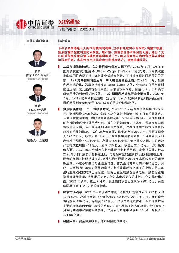 【中信证券】【20210804】信视角看债:另辟蹊径-21页