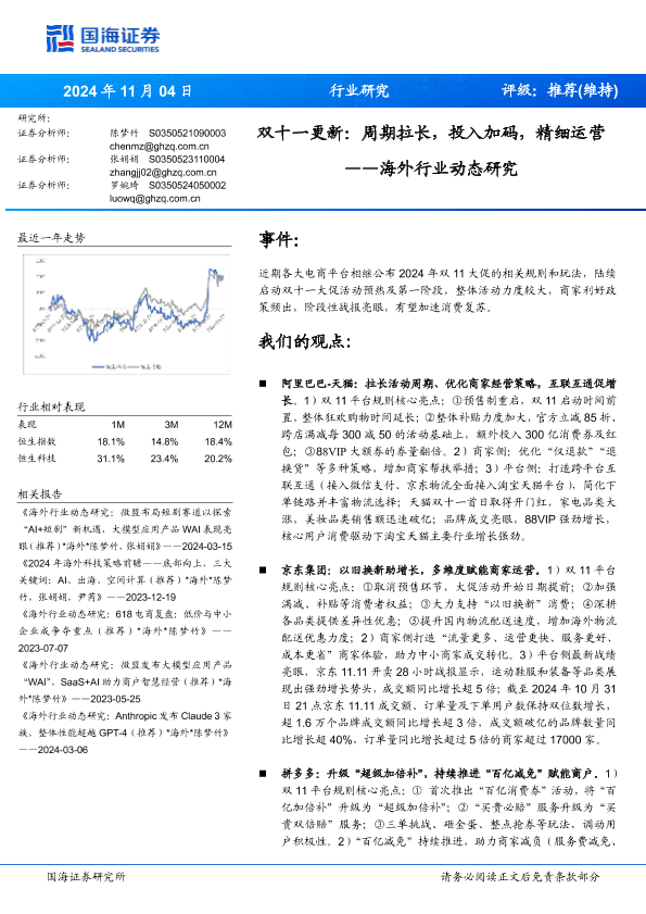 【国海证券】【20241104】电商行业海外行业动态研究-双十一更新:周期拉长,投入加码,精细运营-23页