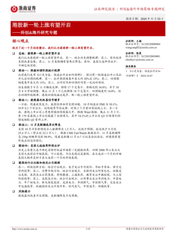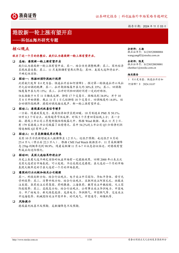 【浙商证券】【20241103】科创&海外研究专题:港股新一轮上涨有望开启-10页