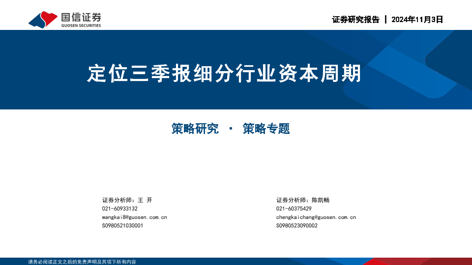 三季报 国信证券 投资策略 行业分析 资本周期