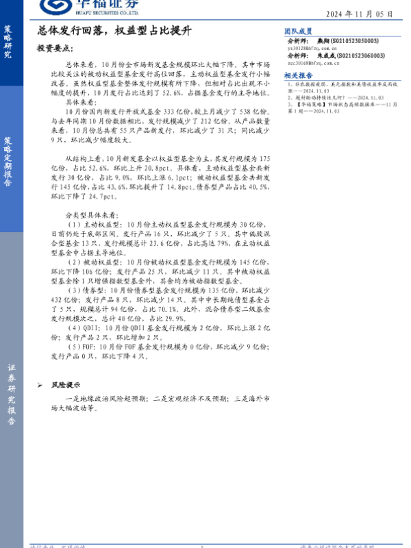 【华福证券】【20241105】策略定期报告:总体发行回落,权益型占比提升-11页