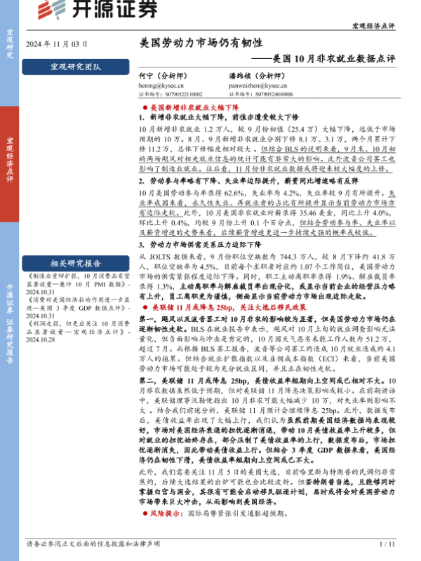 【开源证券】【20241103】美国10月非农就业数据点评:美国劳动力市场仍有韧性-11页