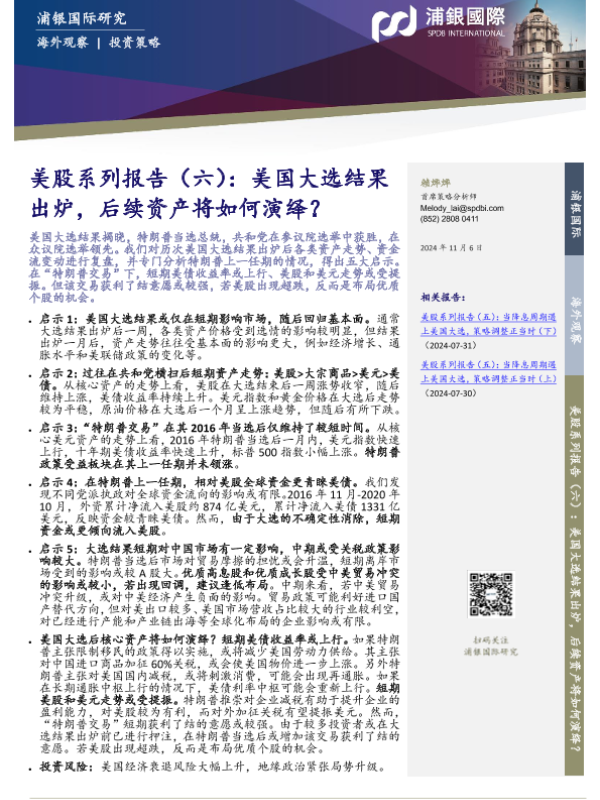 【浦银国际】【20241106】美股系列报告(六):美国大选结果出炉,后续资产将如何演绎?-14页