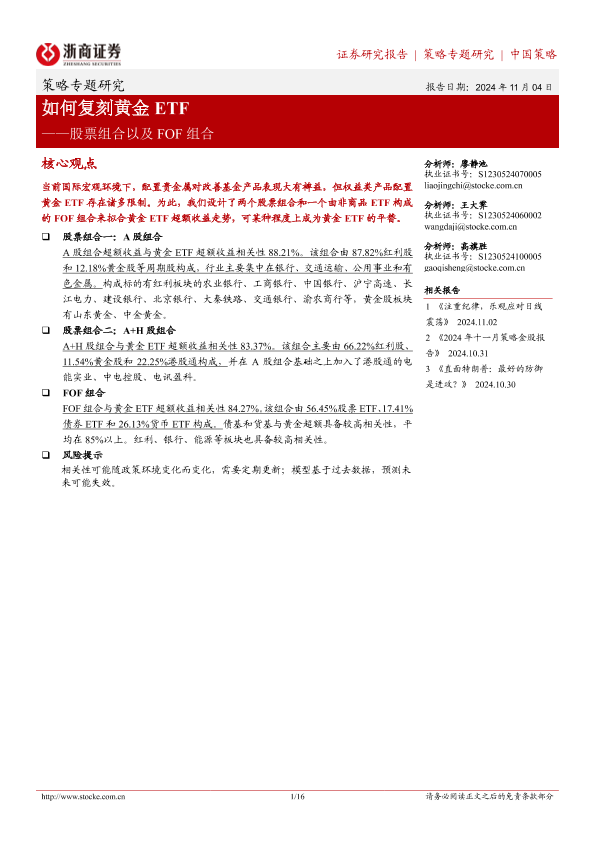 【浙商证券】【20241104】股票组合以及FOF组合:如何复刻黄金ETF-16页