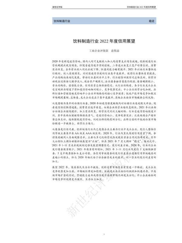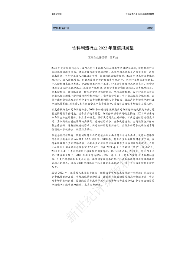 【新世纪评级】【20220101】饮料制造行业2022年度信用展望-27页