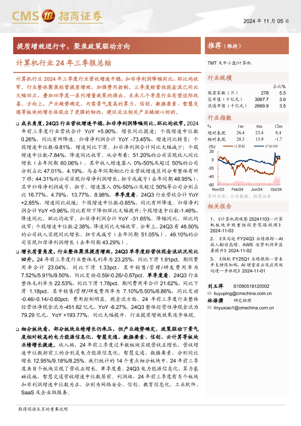 【海通证券】【20241105】计算机行业24年三季报总结:提质增效进行中,聚焦政策驱动方向-44页