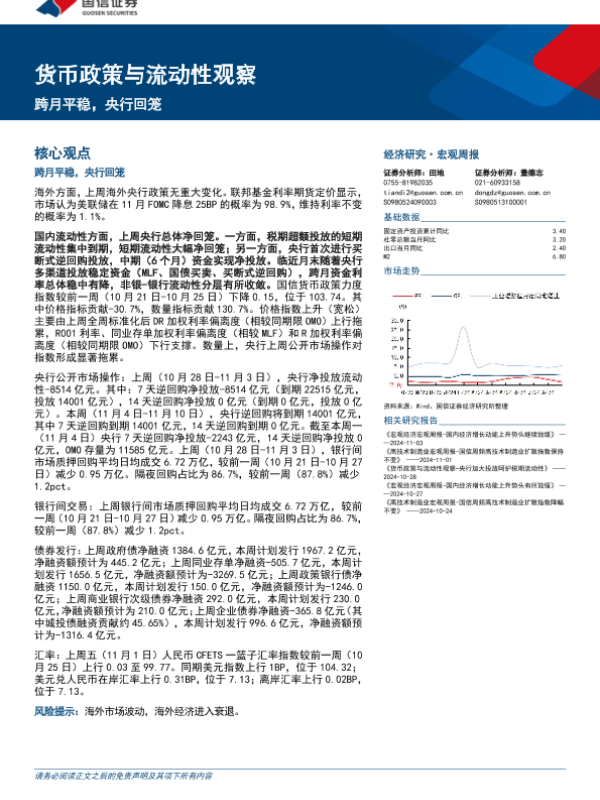 【国信证券】【20241104】货币政策与流动性观察:跨月平稳,央行回笼-14页