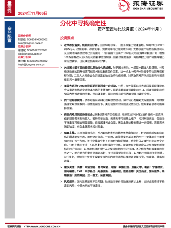 【东海证券】【20241106】资产配置与比较月报(2024年11月):分化中寻找确定性-21页