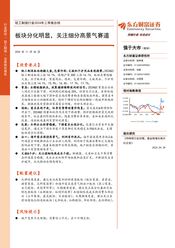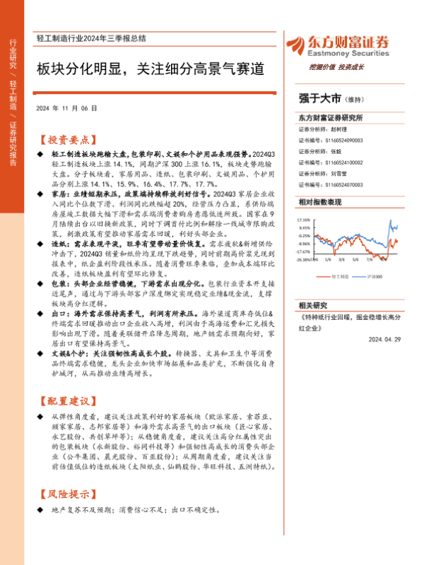 【东方财富证券】【20241106】轻工制造行业2024年三季报总结:板块分化明显,关注细分高景气赛道-11页