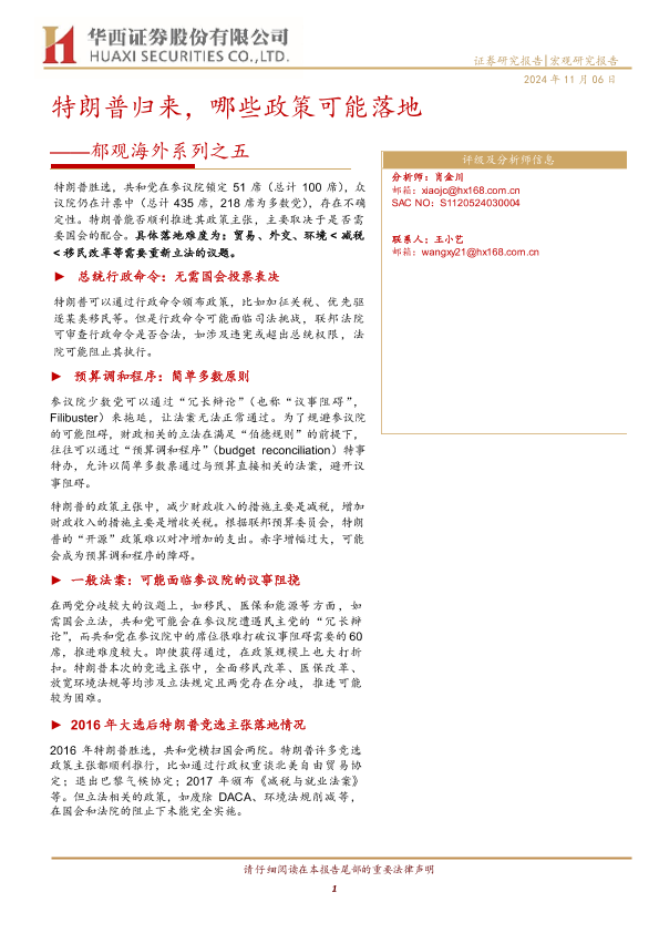 【华西证券】【20241106】特朗普归来,哪些政策可能落地——郁观海外系列之五-13页