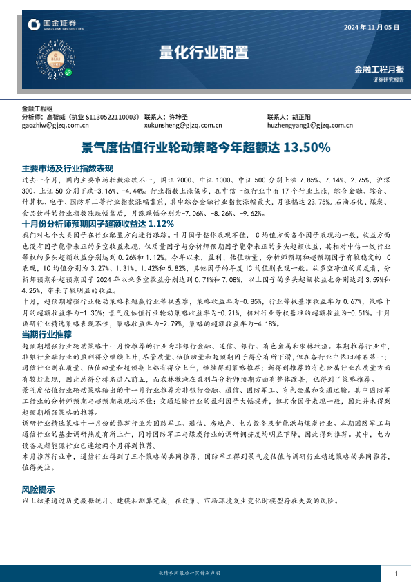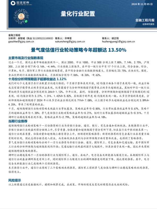 【国金证券】【20241105】量化行业配置:景气度估值行业轮动策略今年超额达13.50%-11页