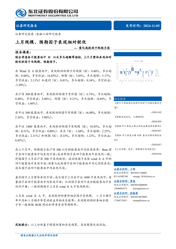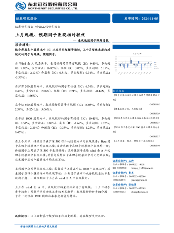 【东北证券】【20241105】量化选股因子跟踪月报:上月规模、预期因子表现相对较优-39页