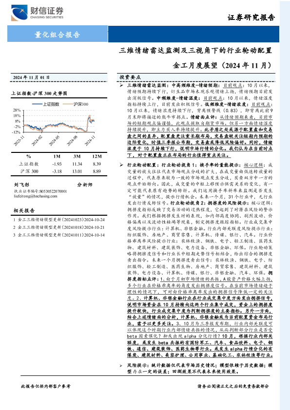 【财信证券】【20241101】金工月度展望(2024年11月):三维情绪雷达监测及三视角下的行业轮动配置-10页