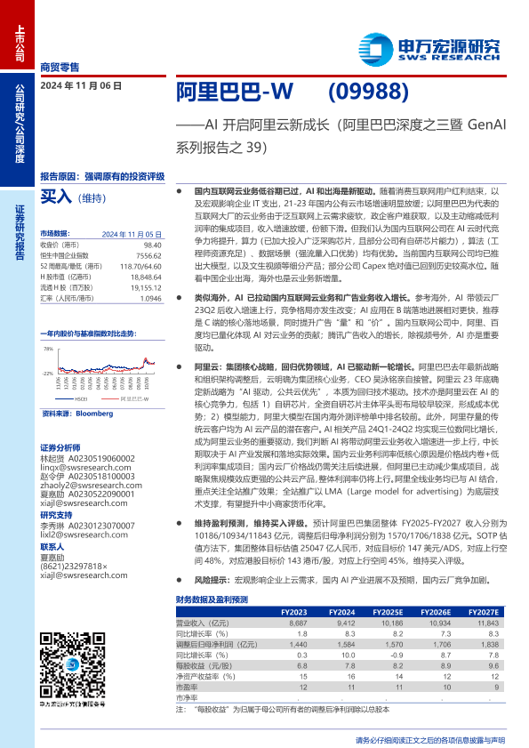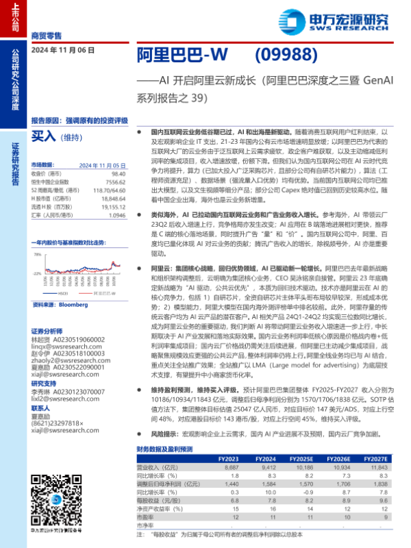 【申万宏源】【20241106】AI开启阿里云新成长(阿里巴巴深度之三暨GenAI系列报告之39)-38页