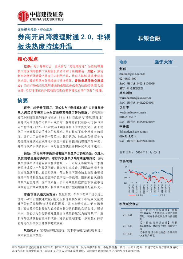 【中信建投证券】【20241103】非银金融行业:券商开启跨境理财通2.0,非银板块热度持续升温-25页