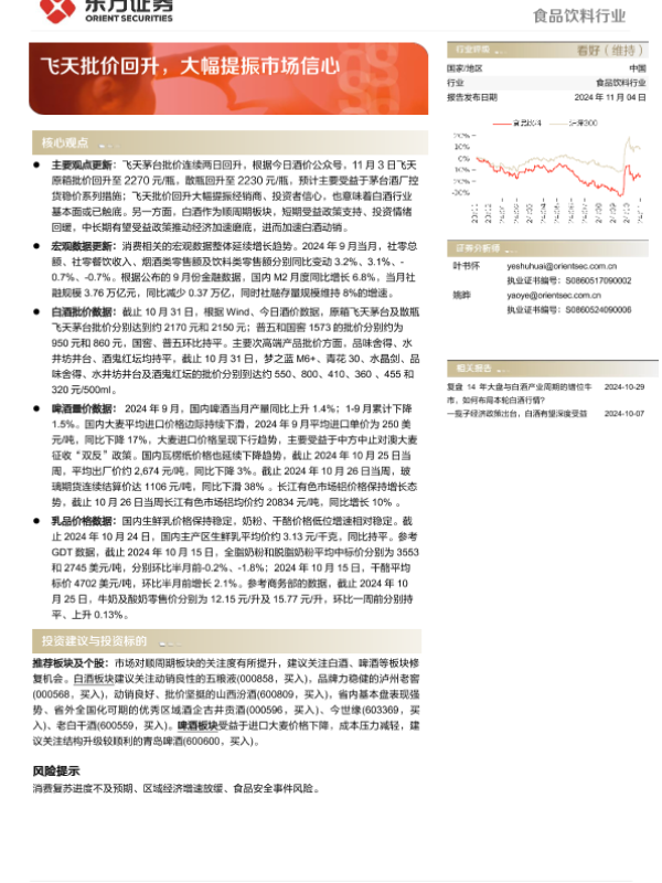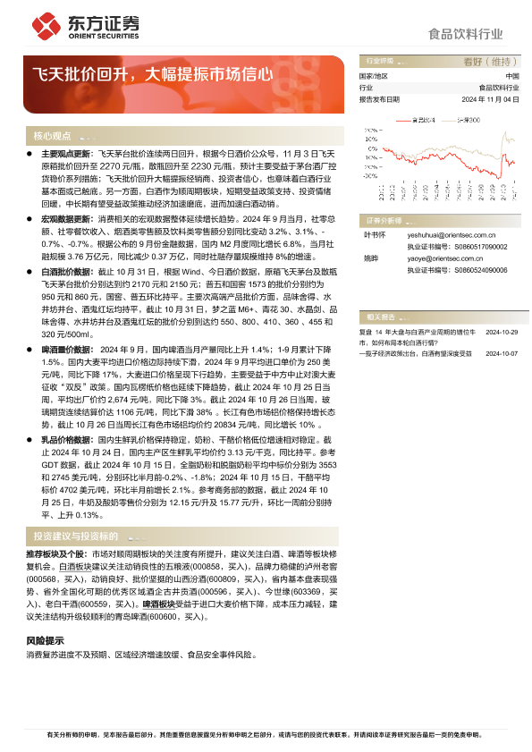 【东方证券】【20241104】食品饮料行业:飞天批价回升,大幅提振市场信心-11页