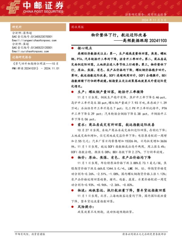 【中邮证券】【20241103】高频数据跟踪:物价整体下行,航运边际改善-13页