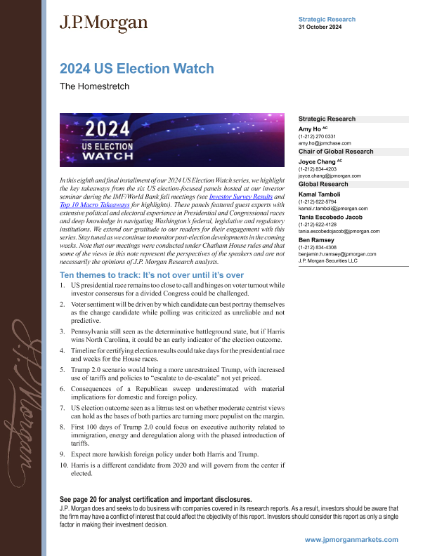【J.P. Morgan】【20241031】2024 US Election Watch The Homestretch-24页