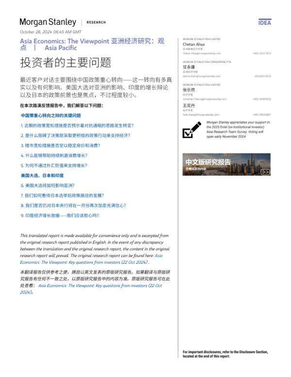 【Morgan Stanley】【20241022】亚洲经济研究:观点 投资者的主要问题-12页