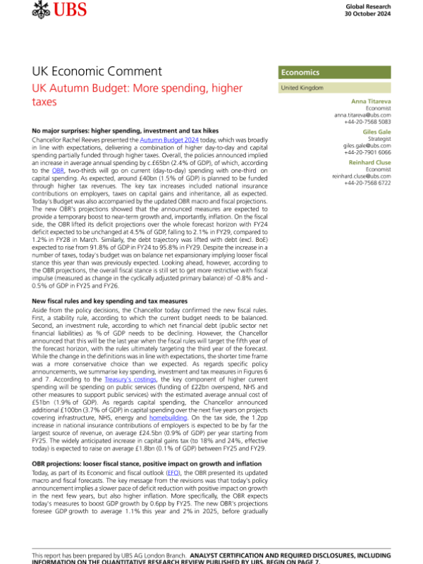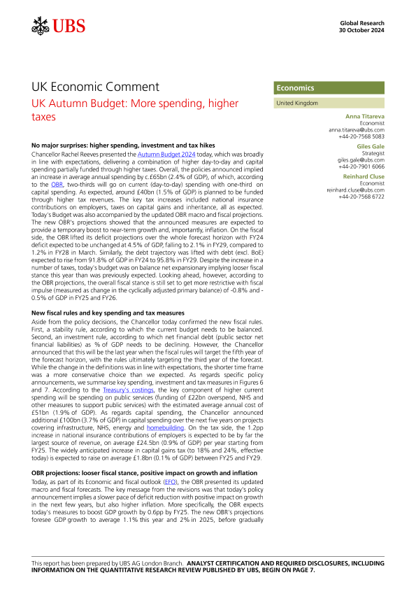 【UBS AG London Branch】【20241030】UK Autumn Budget More spending, higher taxes-10页