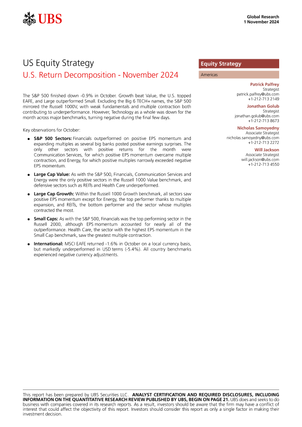 【UBS Securities LLC】【20241101】US Equity Strategy U.S. Return Decomposition - November 2024-25页