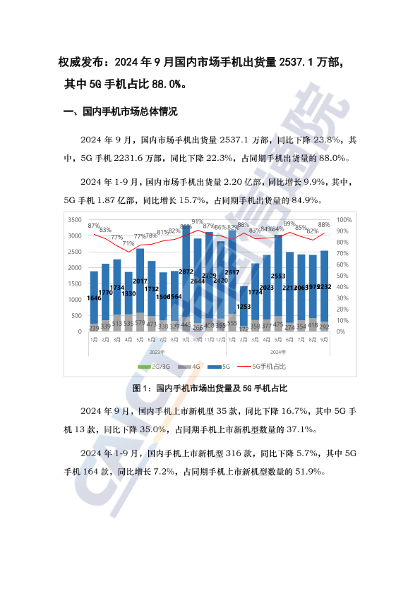 【中国信息通信研究院】【202409】2024年9月国内手机市场运行分析报告-3页
