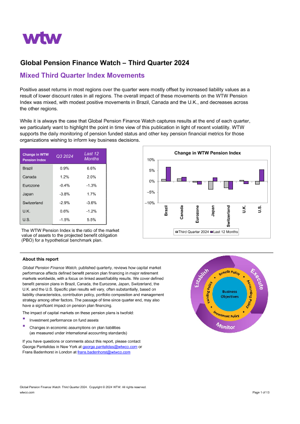 【WTW】【202409】WTW-全球养老金金融观察-2024年第三季度-13页