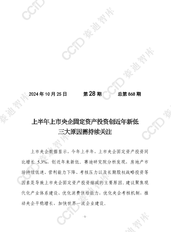 【赛迪研究院】【20241025】上半年上市央企固定资产投资创近年新低,三大原因需持续关注-7页