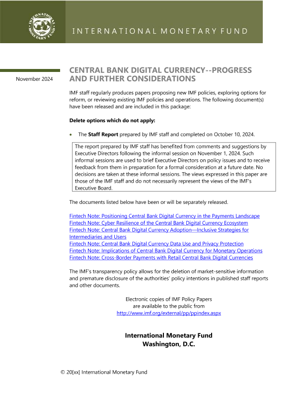 【International Monetary Fund】【202411】IMF-中央银行数字货币:进展和进一步考虑-24页