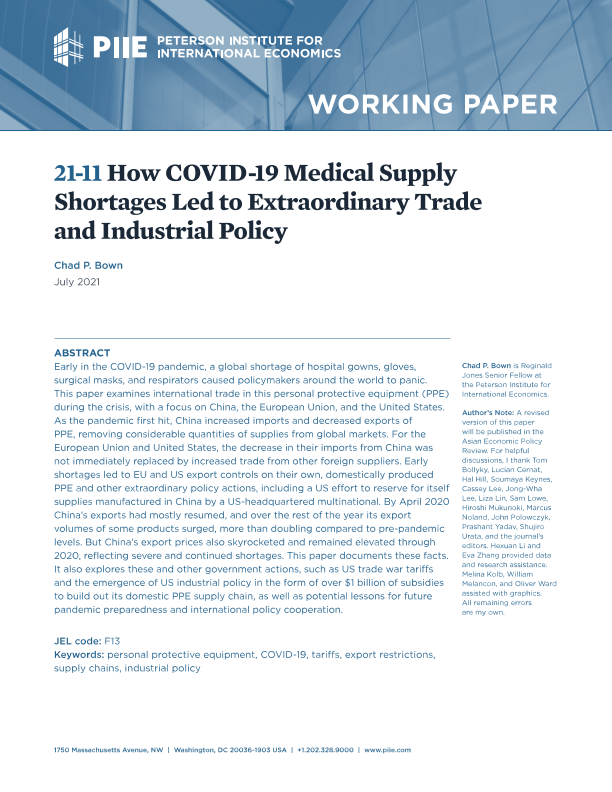 【彼得森经济研究所】【202107】新冠疫情医疗供应短缺如何导致非同寻常的贸易和产业政策-30页
