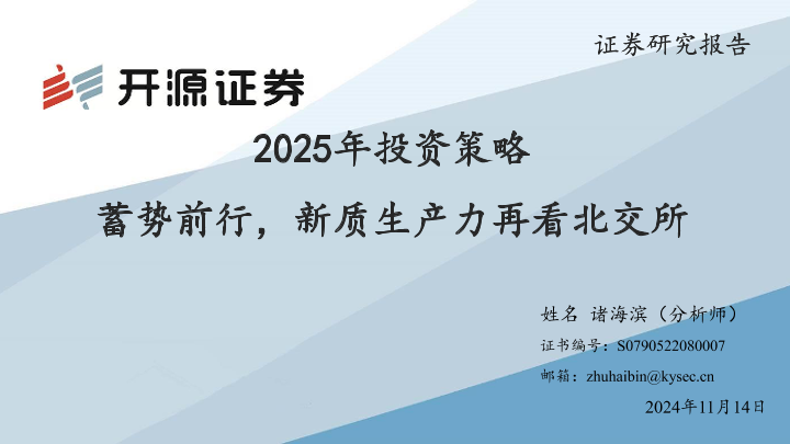 【开源证券】【20241114】2025年投资策略:蓄势前行,新质生产力再看北交所-32页
